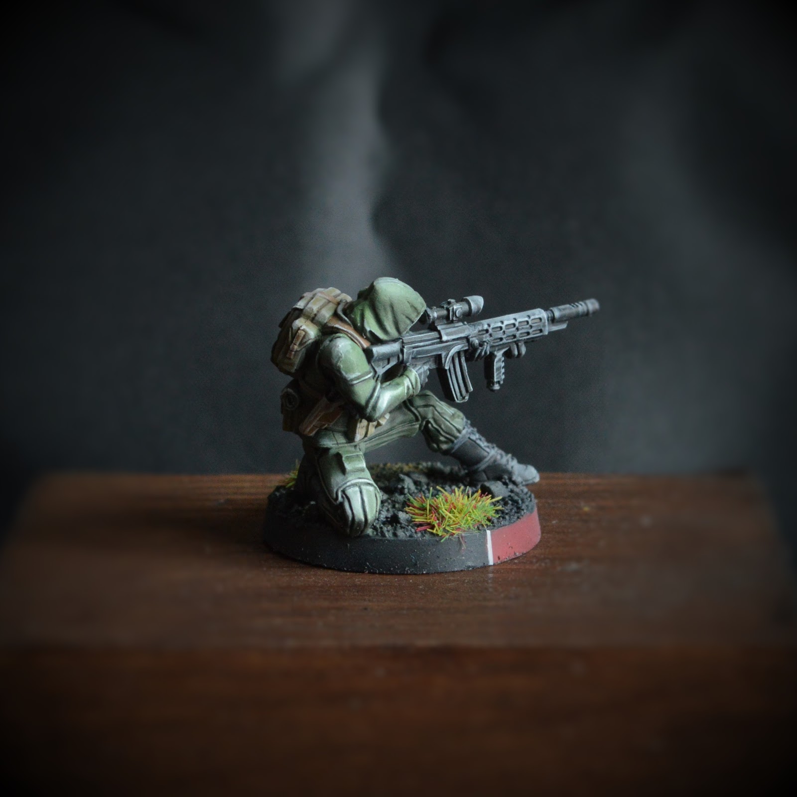 Начал их красить исключительно из-за попробовать фрихенды на шлеме и на наплечниках. На наплечниках немного схитрил - чтобы не заморачиваться с рисованием идеального круга, наклеил круглые декали. И уже их зарисовывал.